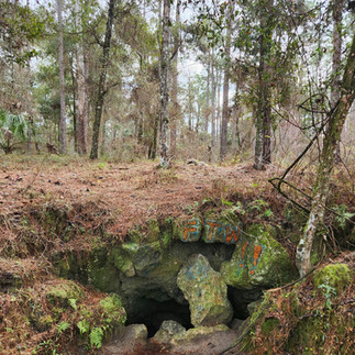 Peace Cave is located on a sub-trail connected to Trail 22. It’s a short walk from Vandal Cave, and you can make it there in just minutes. You’ll know you’ve reached the cave when you see a giant tree with a peace sign spray painted at the base of the tree. The opening to this cave is more of a squeeze to reach the inside, but it is still very-doable. You’ll also need a flashlight for this one, as there won’t be any light to guide you in this time, like in Vandal Cave!